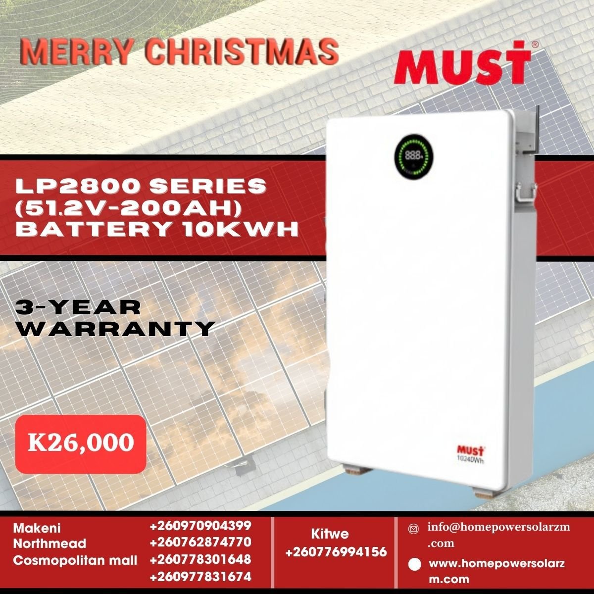 High-capacity lithium battery delivering 10kWh storage for extended backup power during load-shedding with superior cycle life and maintenance-free operation.